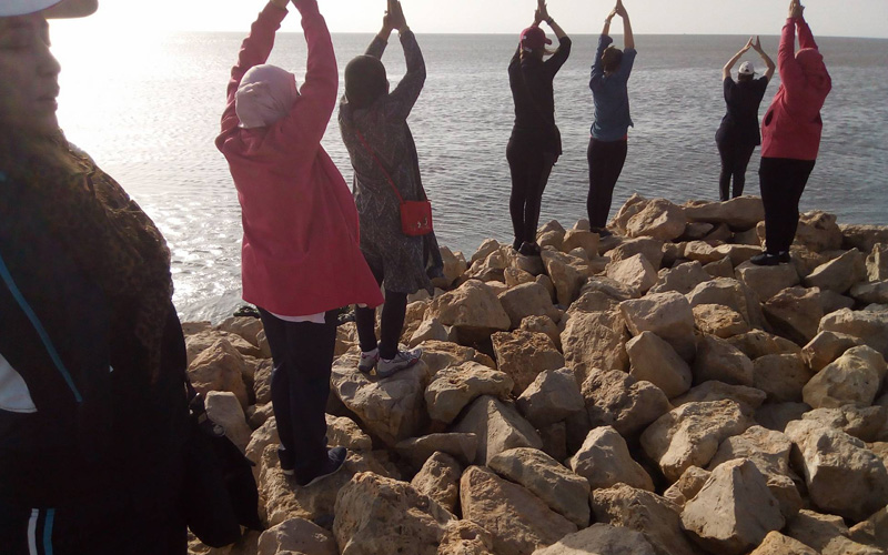 بو هدمة. اليوغا + التأمل + المشي لمسافات طويلة والكثير من الصمت.